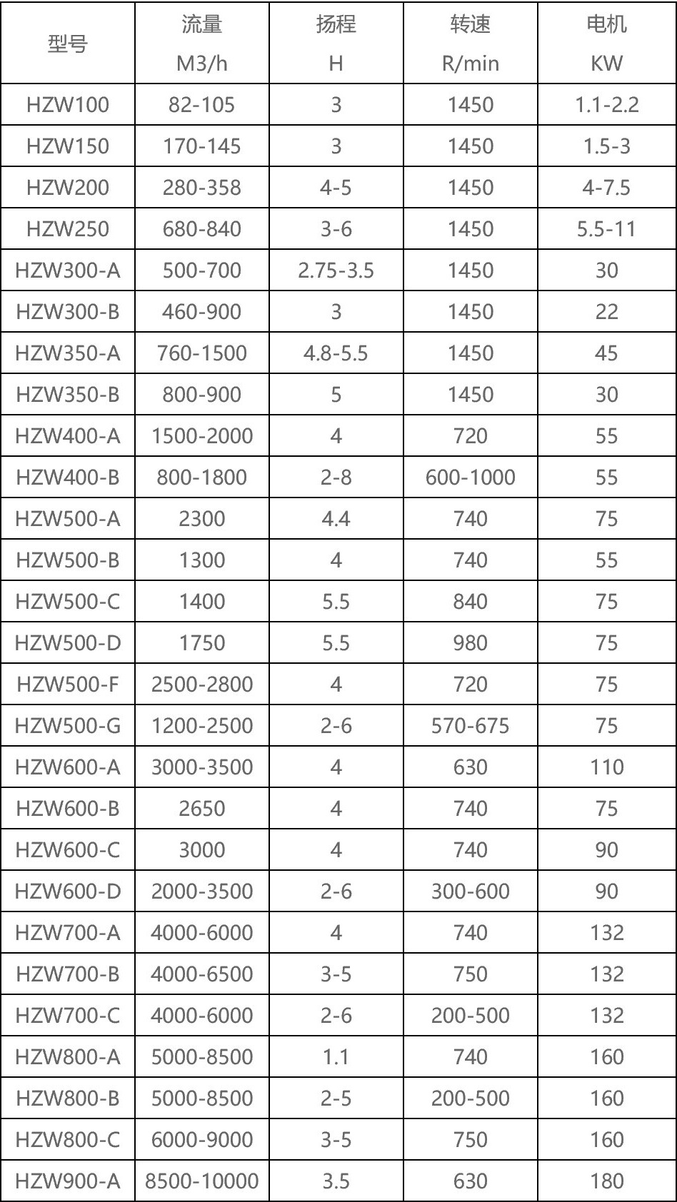 HZW型系列化工轴流泵主要应用于大流量、低扬程的场合,尤其适用于具有腐蚀性介质的强制循环过程。例如,烧碱、制盐的强制循环,还应用于磷肥、石油、化纤、造纸等生产部门。
